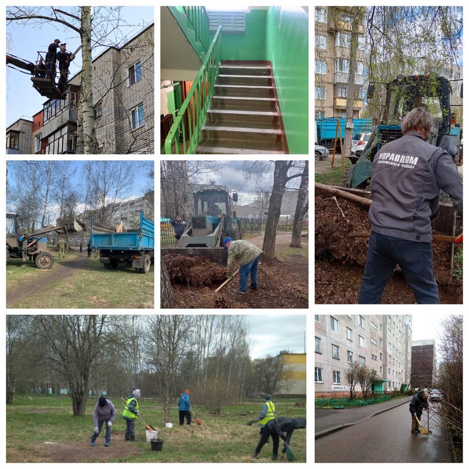 Коллектив Управдома Заволжского района и жители многоквартирных домов, которых управляющая организация обеспечивает необходимым инвентарем, в апреле регулярно выходят во дворы, чтобы совместно убрать накопившийся за зиму мусор.